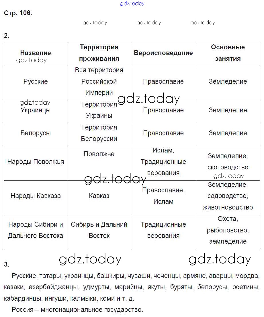 На страницах сайта gdz.today вы найдете учебный и вспомогательный материал, направленный на улучшения знаний школьной программы. ГДЗ - онлайн мир знаний Страницы (решение) 106 Рабочей тетради по Истории России для 8 класса Артасов, Данилов Просвещение УМК 2016