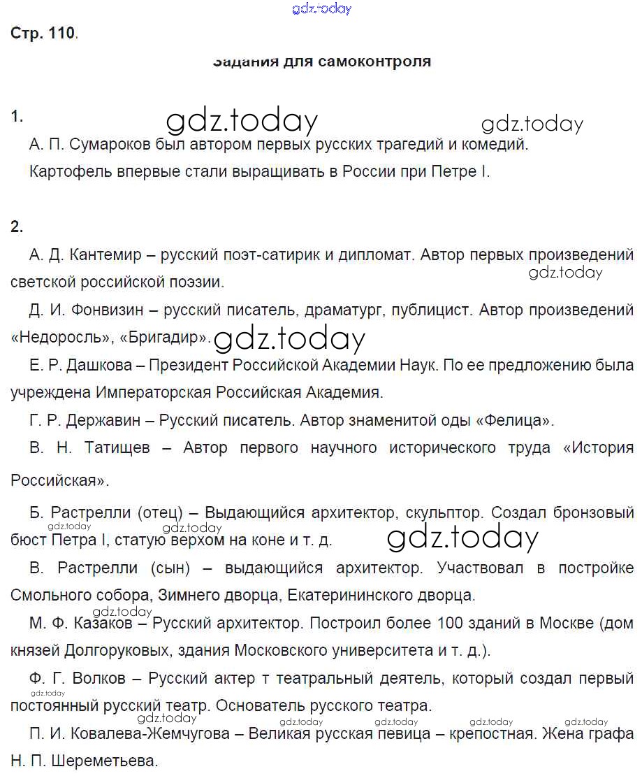 На страницах сайта gdz.today вы найдете учебный и вспомогательный материал, направленный на улучшения знаний школьной программы. ГДЗ - онлайн мир знаний Страницы (решение) 110 Рабочей тетради по Истории России для 8 класса Артасов, Данилов Просвещение УМК 2016