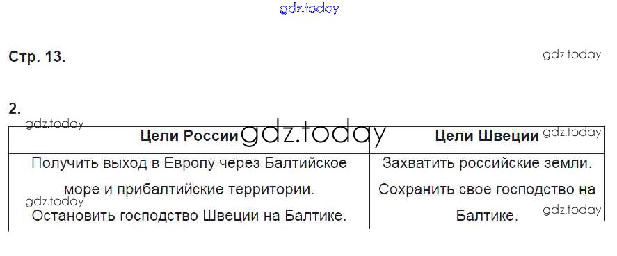 На страницах сайта gdz.today вы найдете учебный и вспомогательный материал, направленный на улучшения знаний школьной программы. ГДЗ - онлайн мир знаний Страницы (решение) 13 Рабочей тетради по Истории России для 8 класса Артасов, Данилов Просвещение УМК 2016