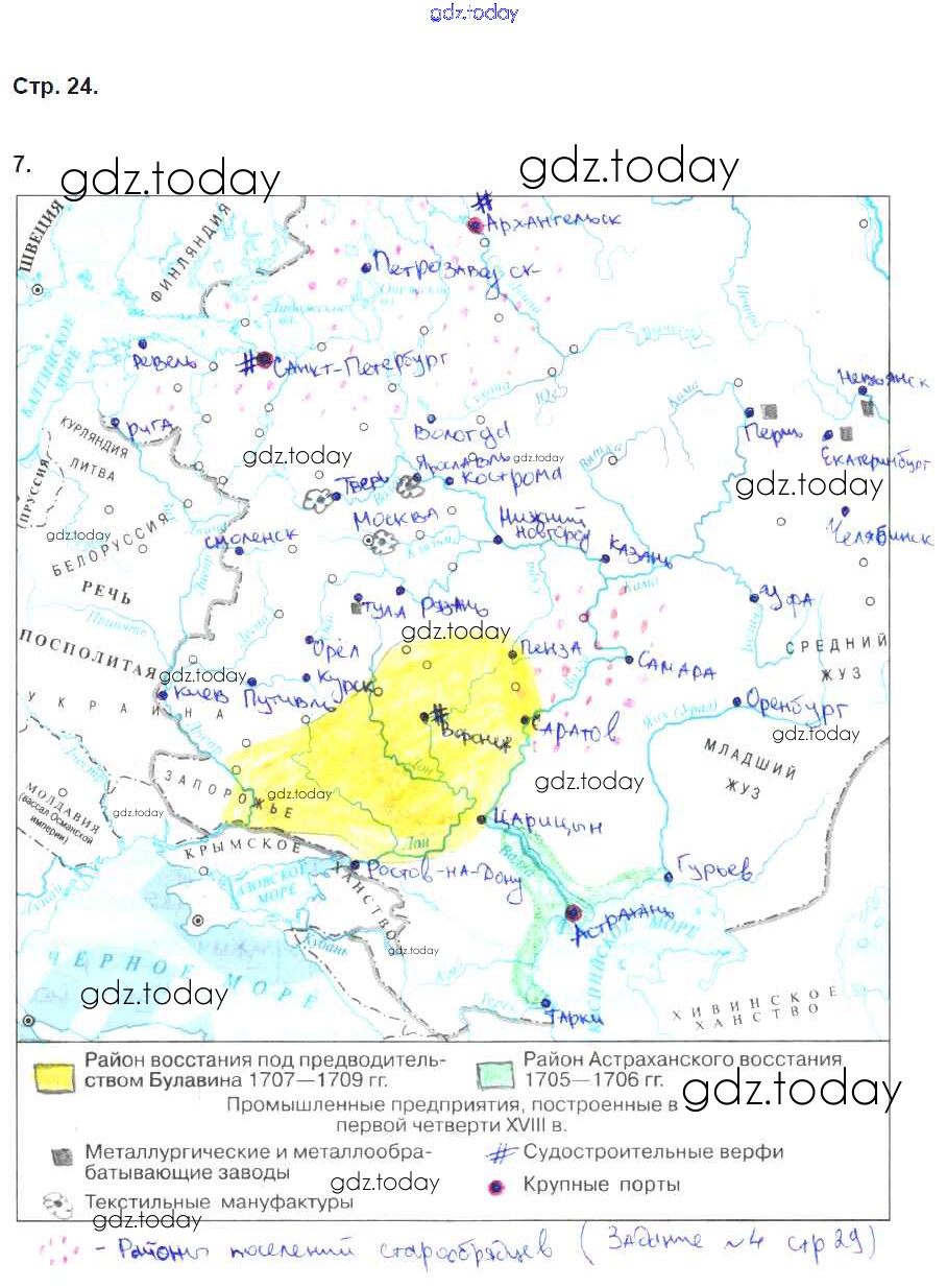 На страницах сайта gdz.today вы найдете учебный и вспомогательный материал, направленный на улучшения знаний школьной программы. ГДЗ - онлайн мир знаний Страницы (решение) 24 Рабочей тетради по Истории России для 8 класса Артасов, Данилов Просвещение УМК 2016