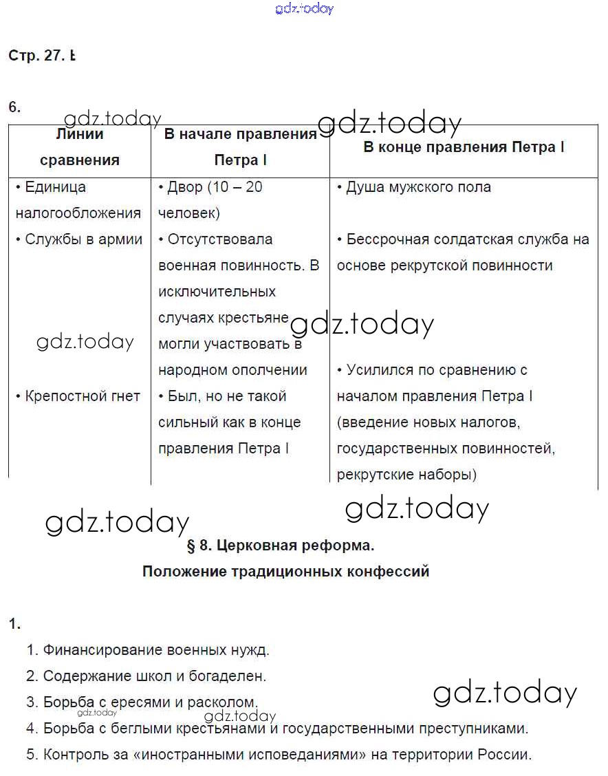 На страницах сайта gdz.today вы найдете учебный и вспомогательный материал, направленный на улучшения знаний школьной программы. ГДЗ - онлайн мир знаний Страницы (решение) 27 Рабочей тетради по Истории России для 8 класса Артасов, Данилов Просвещение УМК 2016