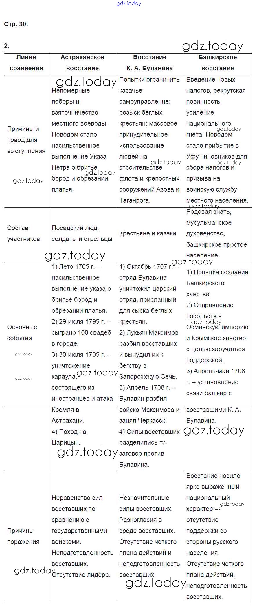На страницах сайта gdz.today вы найдете учебный и вспомогательный материал, направленный на улучшения знаний школьной программы. ГДЗ - онлайн мир знаний Страницы (решение) 30 Рабочей тетради по Истории России для 8 класса Артасов, Данилов Просвещение УМК 2016