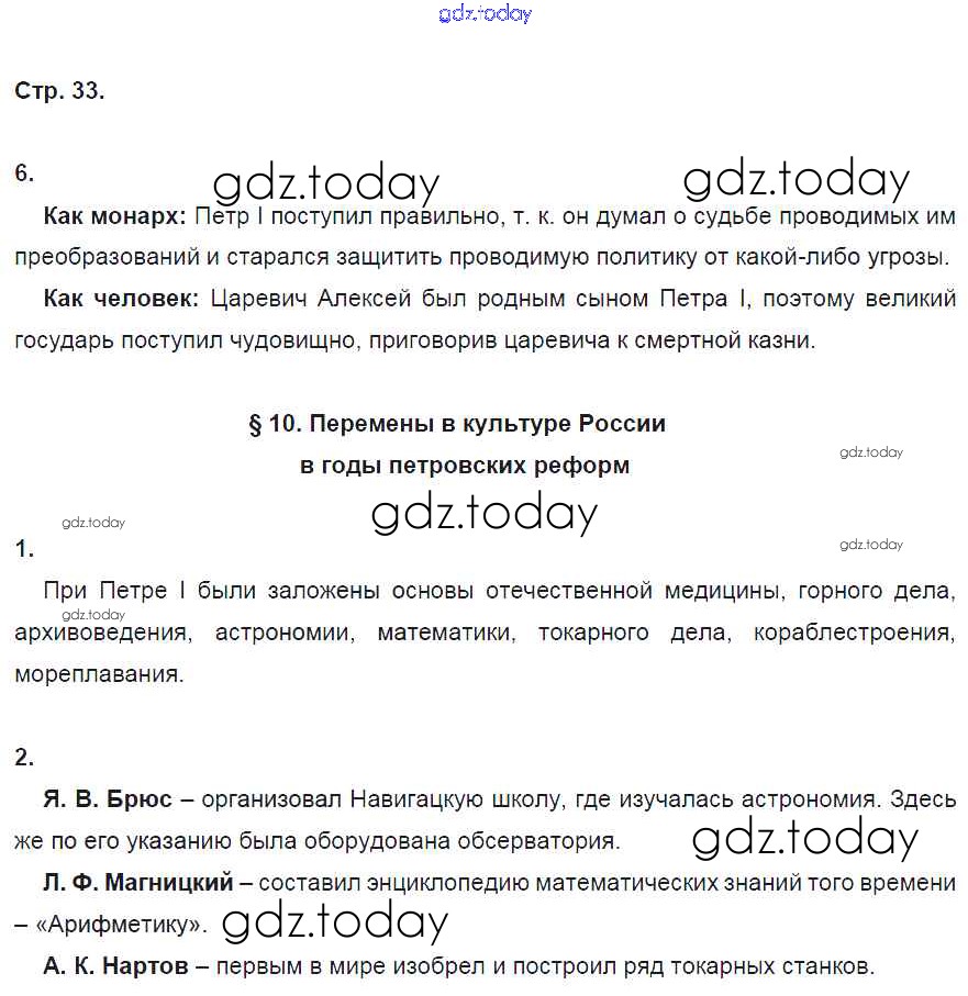 На страницах сайта gdz.today вы найдете учебный и вспомогательный материал, направленный на улучшения знаний школьной программы. ГДЗ - онлайн мир знаний Страницы (решение) 33 Рабочей тетради по Истории России для 8 класса Артасов, Данилов Просвещение УМК 2016