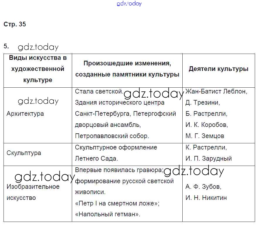 На страницах сайта gdz.today вы найдете учебный и вспомогательный материал, направленный на улучшения знаний школьной программы. ГДЗ - онлайн мир знаний Страницы (решение) 35 Рабочей тетради по Истории России для 8 класса Артасов, Данилов Просвещение УМК 2016