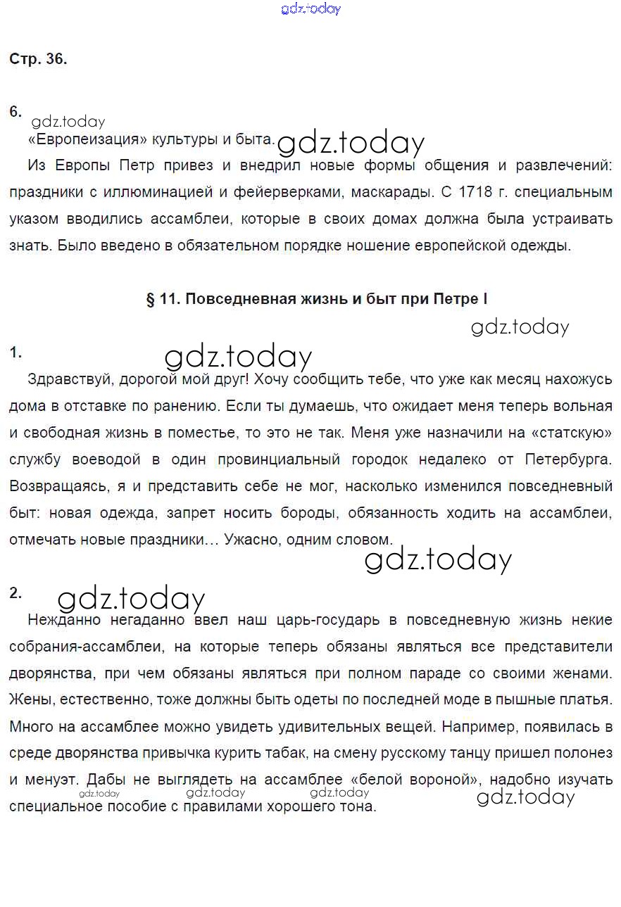 На страницах сайта gdz.today вы найдете учебный и вспомогательный материал, направленный на улучшения знаний школьной программы. ГДЗ - онлайн мир знаний Страницы (решение) 36 Рабочей тетради по Истории России для 8 класса Артасов, Данилов Просвещение УМК 2016