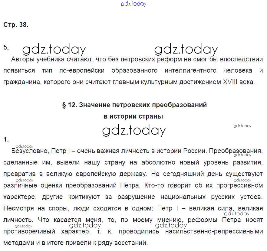 На страницах сайта gdz.today вы найдете учебный и вспомогательный материал, направленный на улучшения знаний школьной программы. ГДЗ - онлайн мир знаний Страницы (решение) 38 Рабочей тетради по Истории России для 8 класса Артасов, Данилов Просвещение УМК 2016