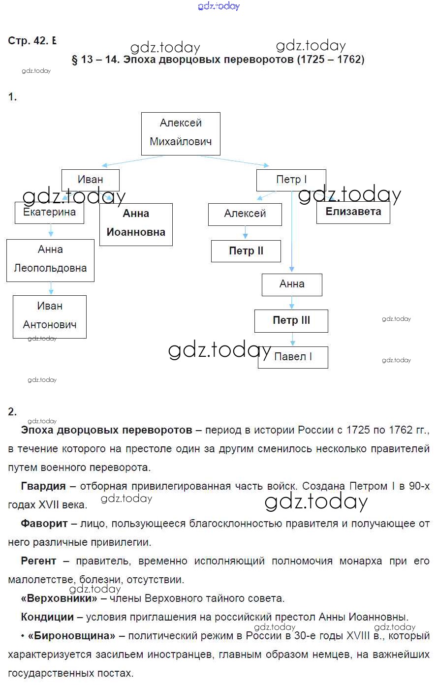 Ответы к Страницы (решение) 42 Рабочей тетради по Истории России для 8 класса Артасов, Данилов Просвещение УМК 2016