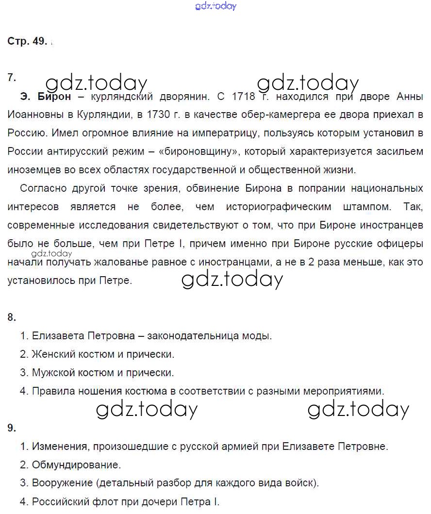 На страницах сайта gdz.today вы найдете учебный и вспомогательный материал, направленный на улучшения знаний школьной программы. ГДЗ - онлайн мир знаний Страницы (решение) 49 Рабочей тетради по Истории России для 8 класса Артасов, Данилов Просвещение УМК 2016
