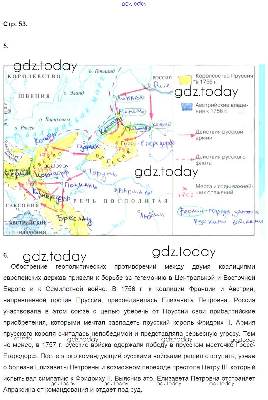 На страницах сайта gdz.today вы найдете учебный и вспомогательный материал, направленный на улучшения знаний школьной программы. ГДЗ - онлайн мир знаний Страницы (решение) 53 Рабочей тетради по Истории России для 8 класса Артасов, Данилов Просвещение УМК 2016