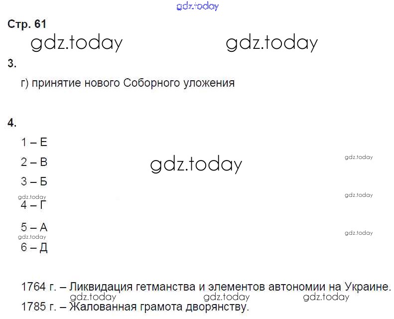 На страницах сайта gdz.today вы найдете учебный и вспомогательный материал, направленный на улучшения знаний школьной программы. ГДЗ - онлайн мир знаний Страницы (решение) 61 Рабочей тетради по Истории России для 8 класса Артасов, Данилов Просвещение УМК 2016