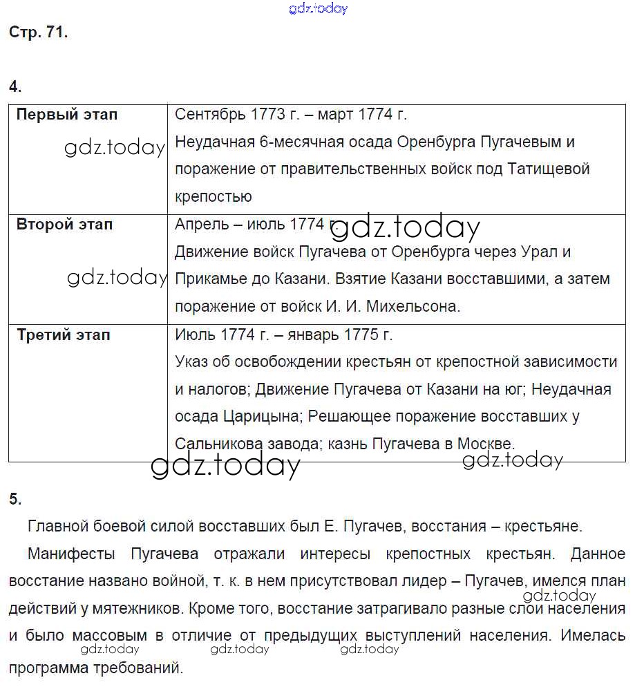 На страницах сайта gdz.today вы найдете учебный и вспомогательный материал, направленный на улучшения знаний школьной программы. ГДЗ - онлайн мир знаний Страницы (решение) 71 Рабочей тетради по Истории России для 8 класса Артасов, Данилов Просвещение УМК 2016