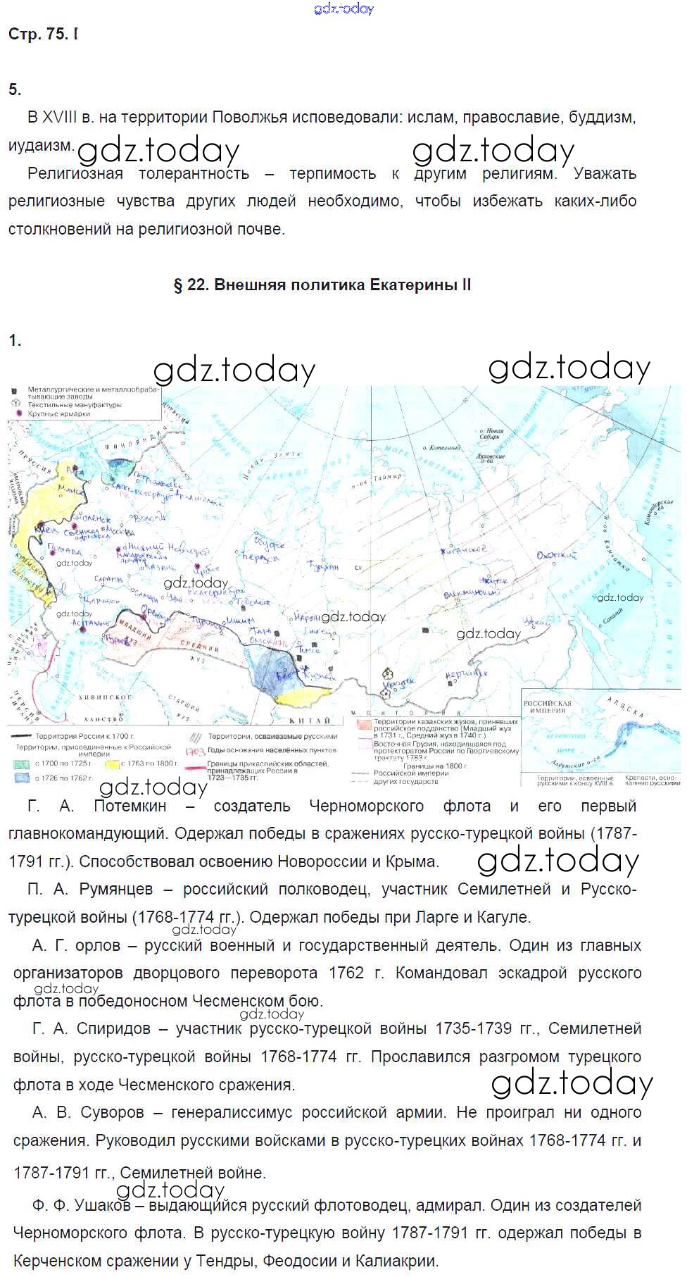 На страницах сайта gdz.today вы найдете учебный и вспомогательный материал, направленный на улучшения знаний школьной программы. ГДЗ - онлайн мир знаний Страницы (решение) 75 Рабочей тетради по Истории России для 8 класса Артасов, Данилов Просвещение УМК 2016