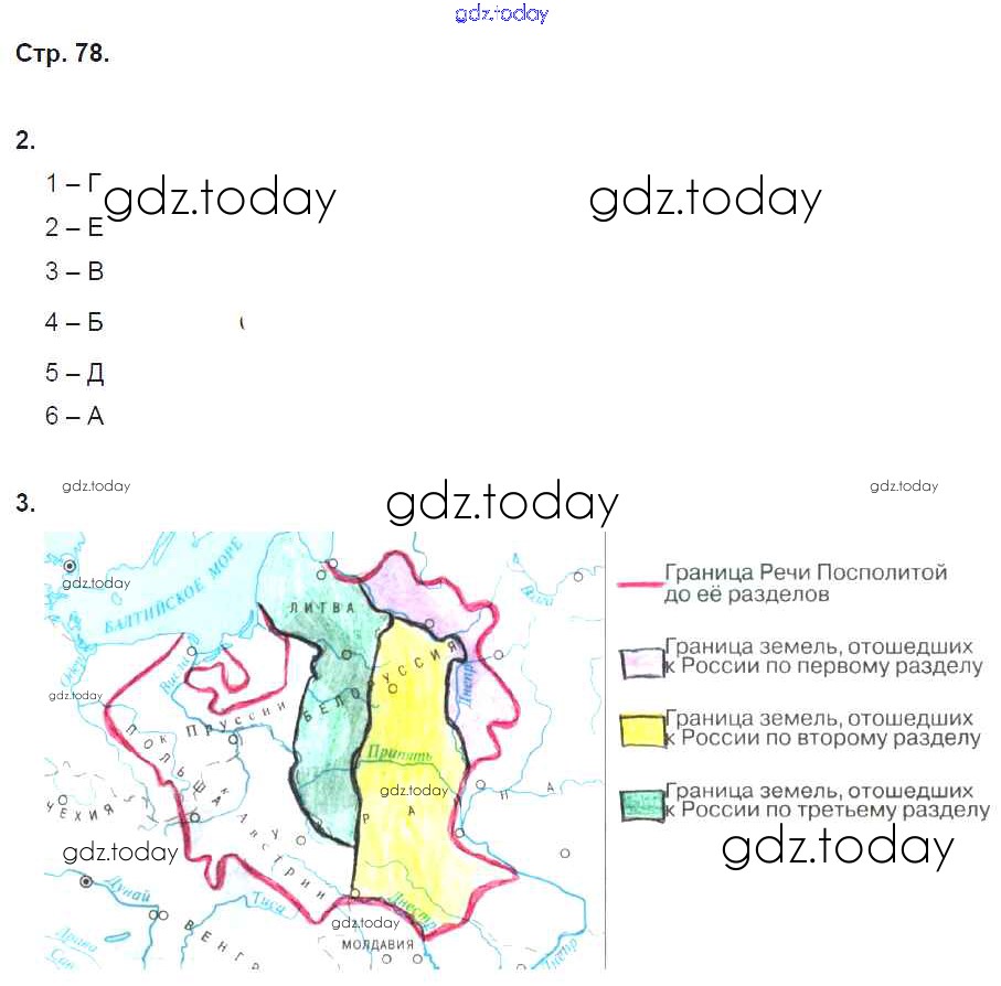 На страницах сайта gdz.today вы найдете учебный и вспомогательный материал, направленный на улучшения знаний школьной программы. ГДЗ - онлайн мир знаний Страницы (решение) 78 Рабочей тетради по Истории России для 8 класса Артасов, Данилов Просвещение УМК 2016
