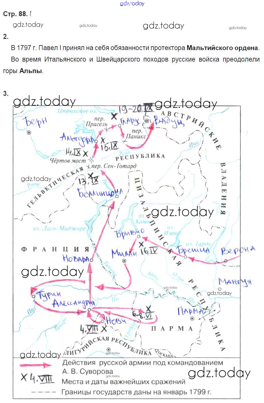 На страницах сайта gdz.today вы найдете учебный и вспомогательный материал, направленный на улучшения знаний школьной программы. ГДЗ - онлайн мир знаний Страницы (решение) 88 Рабочей тетради по Истории России для 8 класса Артасов, Данилов Просвещение УМК 2016