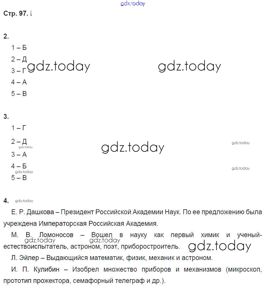 На страницах сайта gdz.today вы найдете учебный и вспомогательный материал, направленный на улучшения знаний школьной программы. ГДЗ - онлайн мир знаний Страницы (решение) 97 Рабочей тетради по Истории России для 8 класса Артасов, Данилов Просвещение УМК 2016