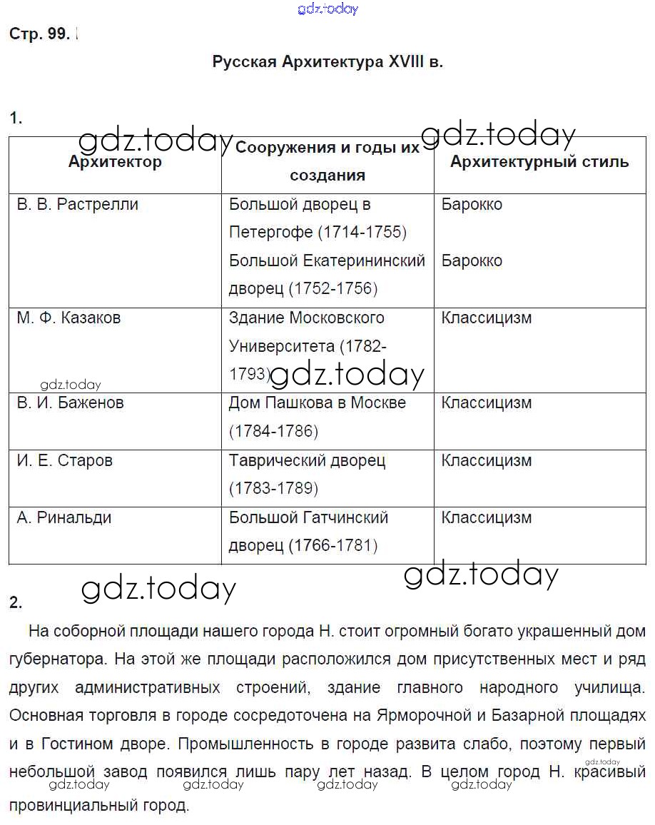 На страницах сайта gdz.today вы найдете учебный и вспомогательный материал, направленный на улучшения знаний школьной программы. ГДЗ - онлайн мир знаний Страницы (решение) 99 Рабочей тетради по Истории России для 8 класса Артасов, Данилов Просвещение УМК 2016