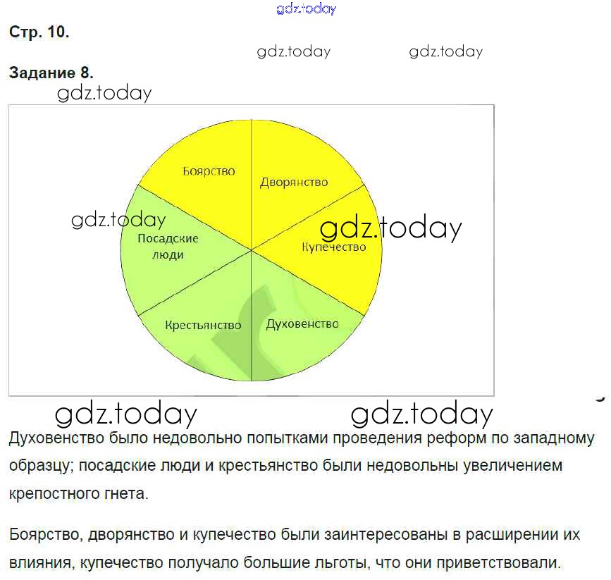 На страницах сайта gdz.today вы найдете учебный и вспомогательный материал, направленный на улучшения знаний школьной программы. ГДЗ - онлайн мир знаний Решение к части 1. Страницы 10 Рабочей тетради по Истории России для 8 класса Чернова Экзамен УМК 2017