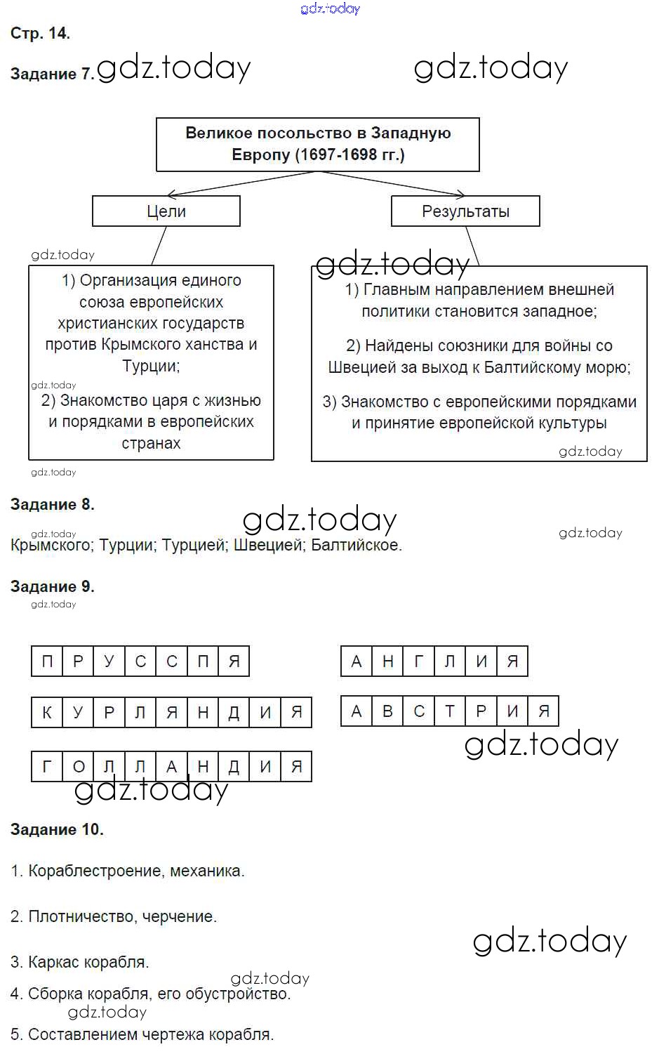 На страницах сайта gdz.today вы найдете учебный и вспомогательный материал, направленный на улучшения знаний школьной программы. ГДЗ - онлайн мир знаний Решение к части 1. Страницы 14 Рабочей тетради по Истории России для 8 класса Чернова Экзамен УМК 2017