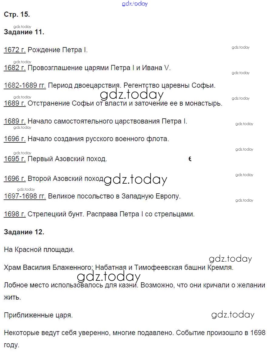 На страницах сайта gdz.today вы найдете учебный и вспомогательный материал, направленный на улучшения знаний школьной программы. ГДЗ - онлайн мир знаний Решение к части 1. Страницы 15 Рабочей тетради по Истории России для 8 класса Чернова Экзамен УМК 2017