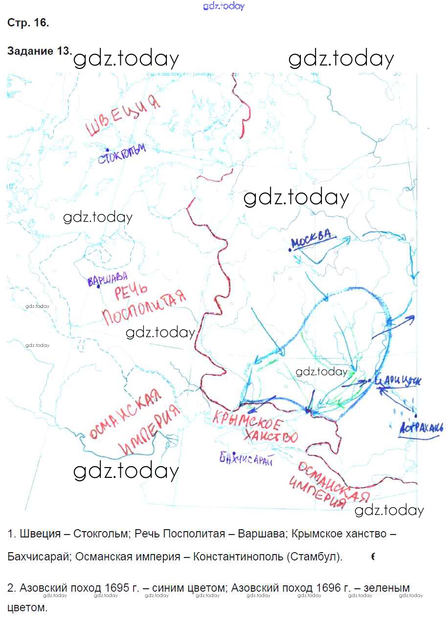 На страницах сайта gdz.today вы найдете учебный и вспомогательный материал, направленный на улучшения знаний школьной программы. ГДЗ - онлайн мир знаний Решение к части 1. Страницы 16 Рабочей тетради по Истории России для 8 класса Чернова Экзамен УМК 2017