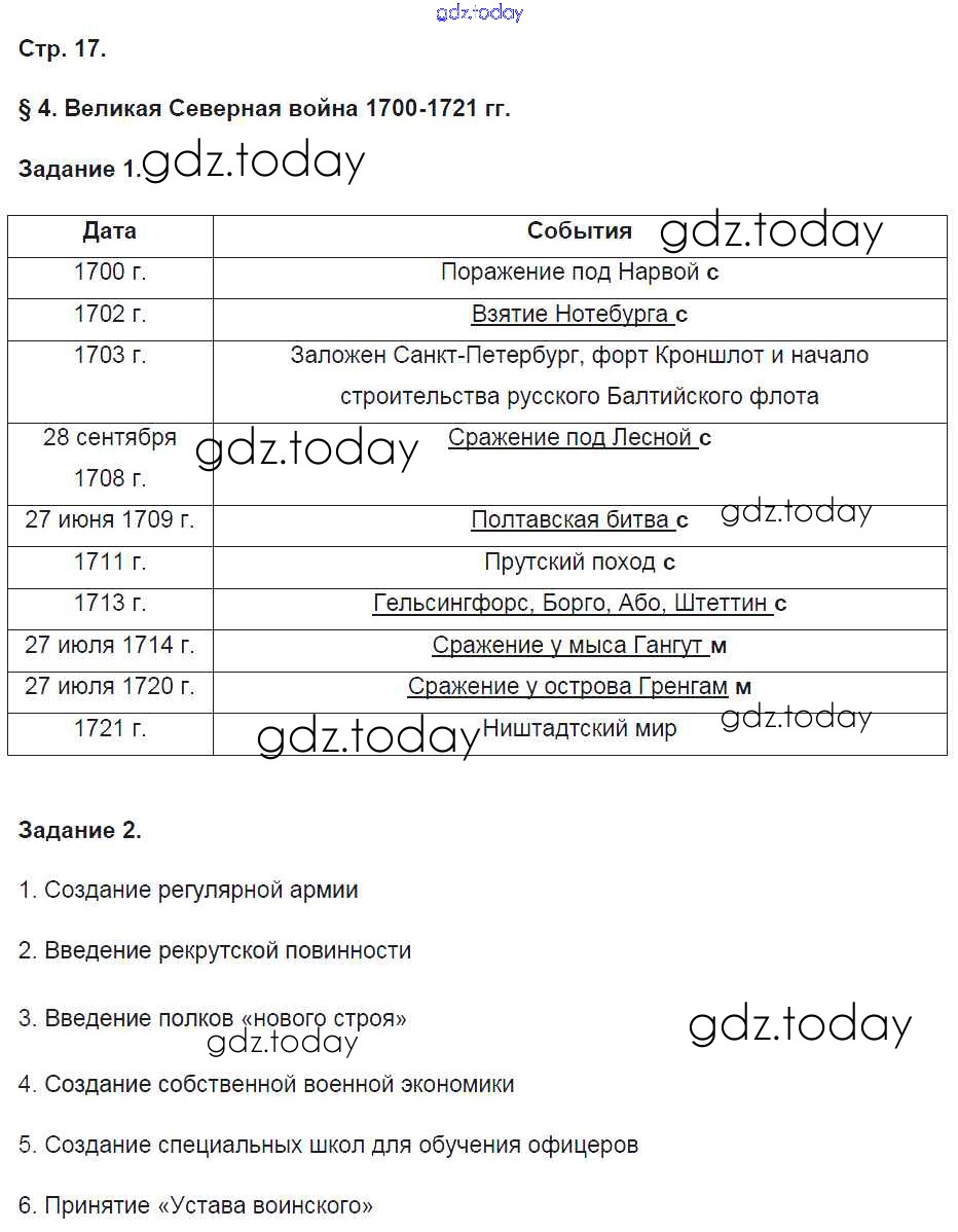 На страницах сайта gdz.today вы найдете учебный и вспомогательный материал, направленный на улучшения знаний школьной программы. ГДЗ - онлайн мир знаний Решение к части 1. Страницы 17 Рабочей тетради по Истории России для 8 класса Чернова Экзамен УМК 2017