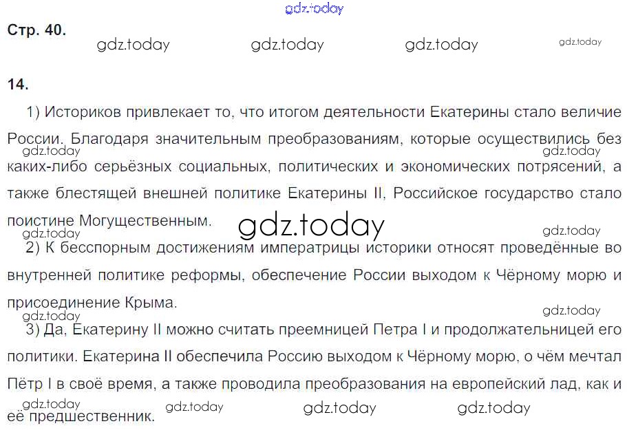 На страницах сайта gdz.today вы найдете учебный и вспомогательный материал, направленный на улучшения знаний школьной программы. ГДЗ - онлайн мир знаний Решение к части 1. Страницы 40 Рабочей тетради по Истории России для 8 класса Чернова Экзамен УМК 2017