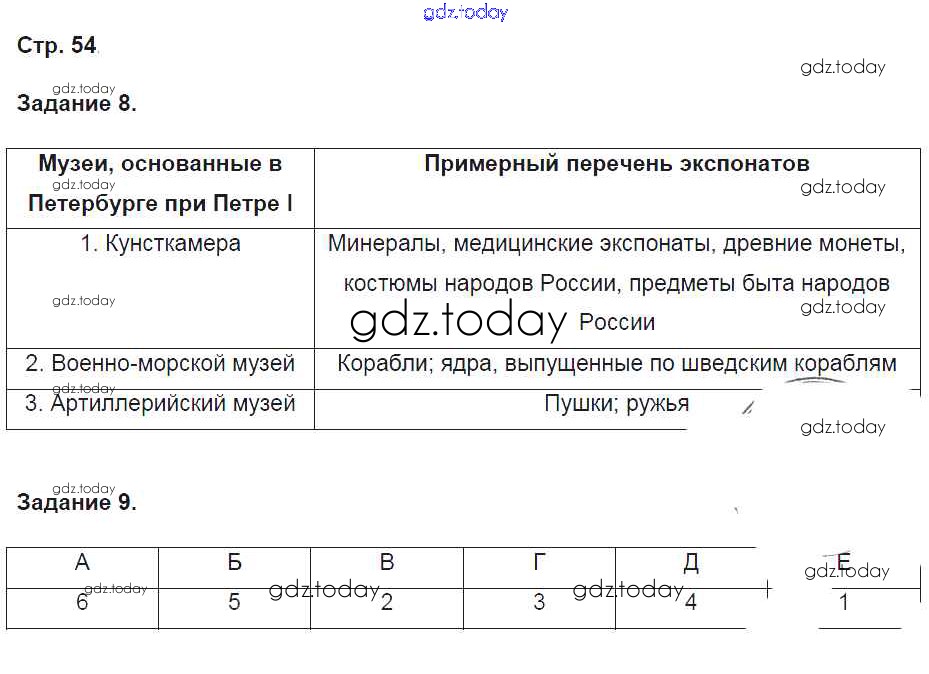 На страницах сайта gdz.today вы найдете учебный и вспомогательный материал, направленный на улучшения знаний школьной программы. ГДЗ - онлайн мир знаний Решение к части 1. Страницы 54 Рабочей тетради по Истории России для 8 класса Чернова Экзамен УМК 2017