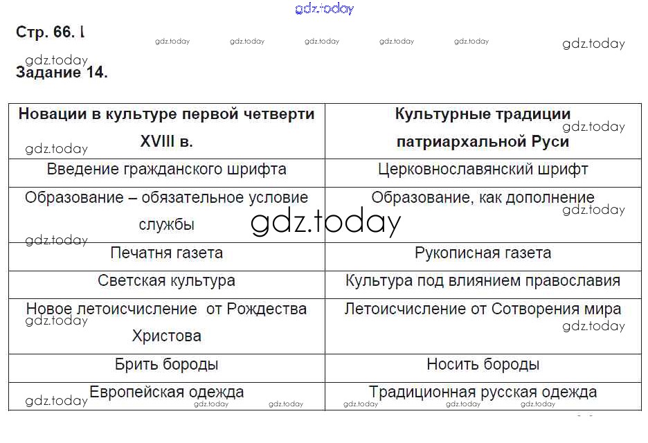 На страницах сайта gdz.today вы найдете учебный и вспомогательный материал, направленный на улучшения знаний школьной программы. ГДЗ - онлайн мир знаний Решение к части 1. Страницы 66 Рабочей тетради по Истории России для 8 класса Чернова Экзамен УМК 2017