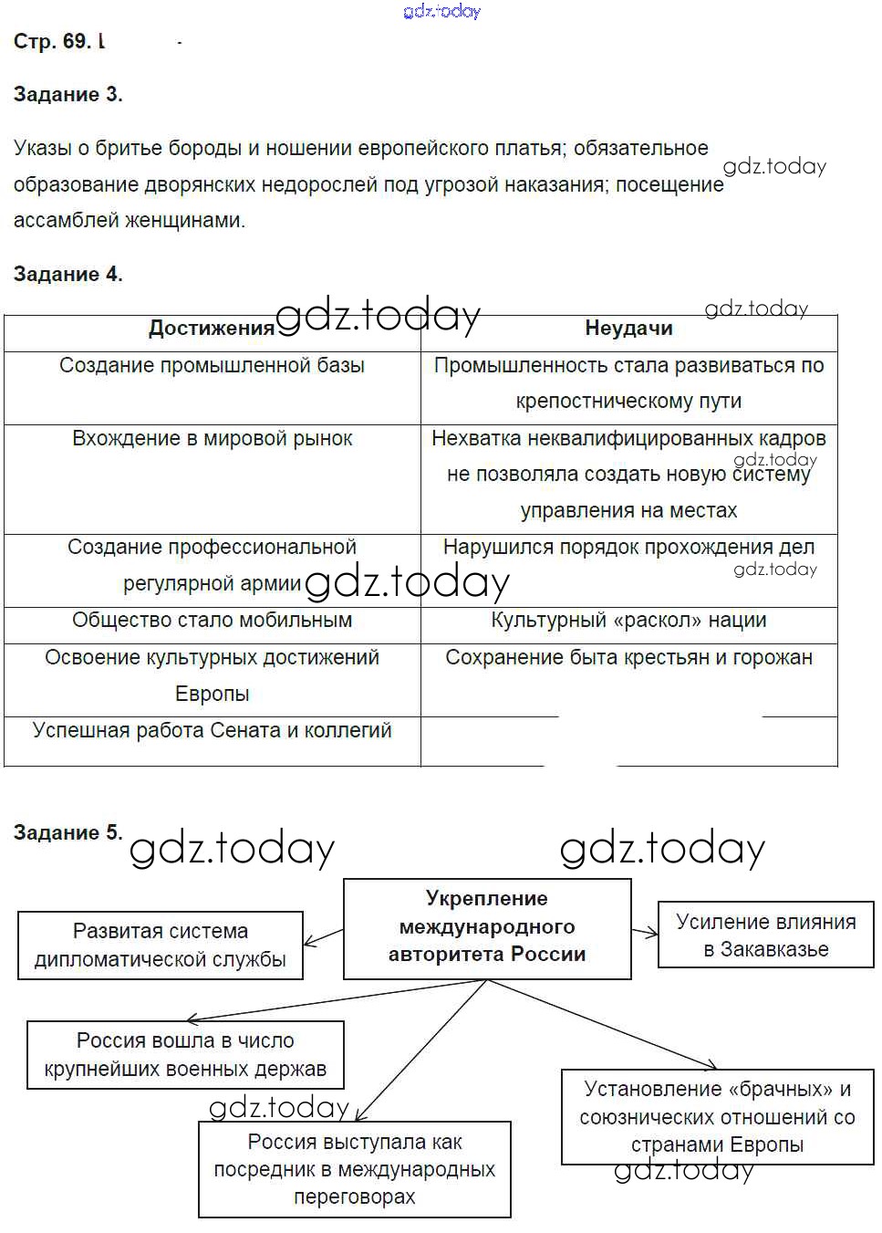 На страницах сайта gdz.today вы найдете учебный и вспомогательный материал, направленный на улучшения знаний школьной программы. ГДЗ - онлайн мир знаний Решение к части 1. Страницы 69 Рабочей тетради по Истории России для 8 класса Чернова Экзамен УМК 2017