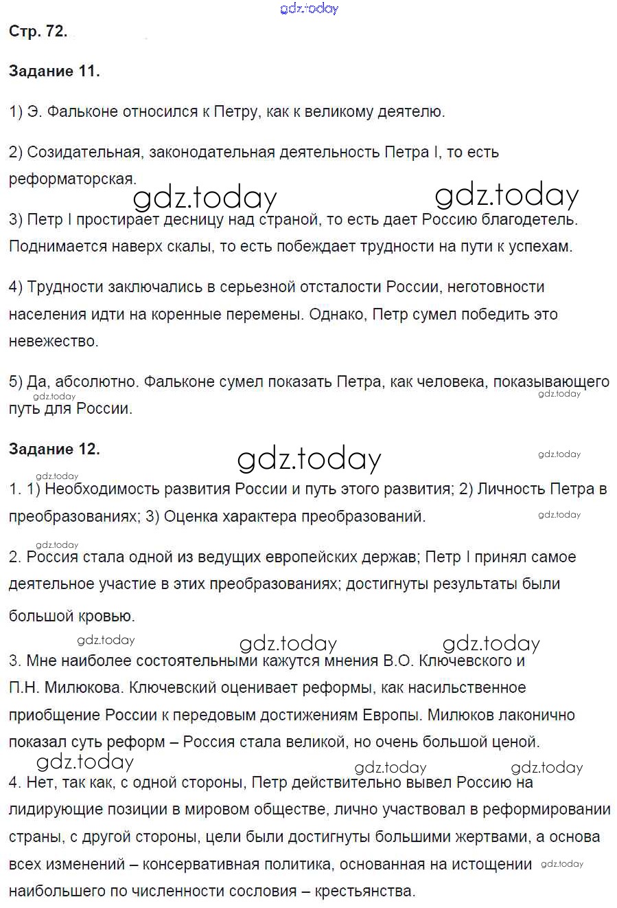 На страницах сайта gdz.today вы найдете учебный и вспомогательный материал, направленный на улучшения знаний школьной программы. ГДЗ - онлайн мир знаний Решение к части 1. Страницы 72 Рабочей тетради по Истории России для 8 класса Чернова Экзамен УМК 2017