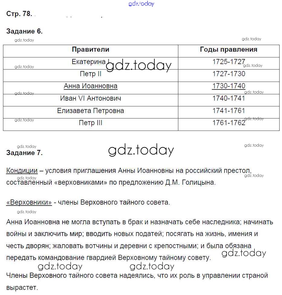На страницах сайта gdz.today вы найдете учебный и вспомогательный материал, направленный на улучшения знаний школьной программы. ГДЗ - онлайн мир знаний Решение к части 1. Страницы 78 Рабочей тетради по Истории России для 8 класса Чернова Экзамен УМК 2017