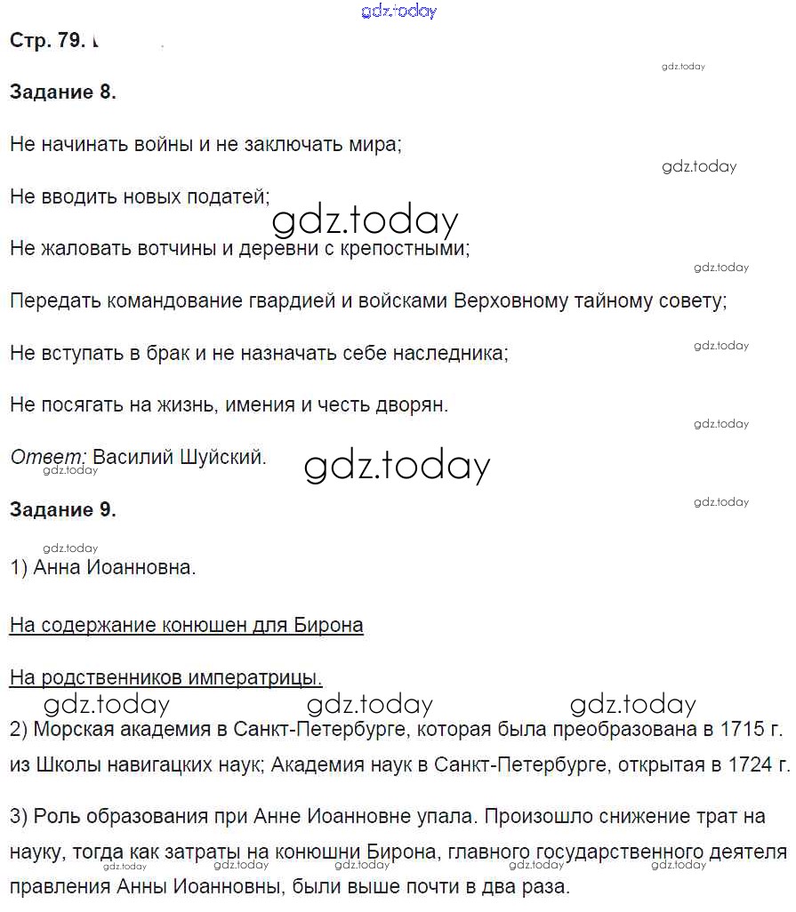 На страницах сайта gdz.today вы найдете учебный и вспомогательный материал, направленный на улучшения знаний школьной программы. ГДЗ - онлайн мир знаний Решение к части 1. Страницы 79 Рабочей тетради по Истории России для 8 класса Чернова Экзамен УМК 2017