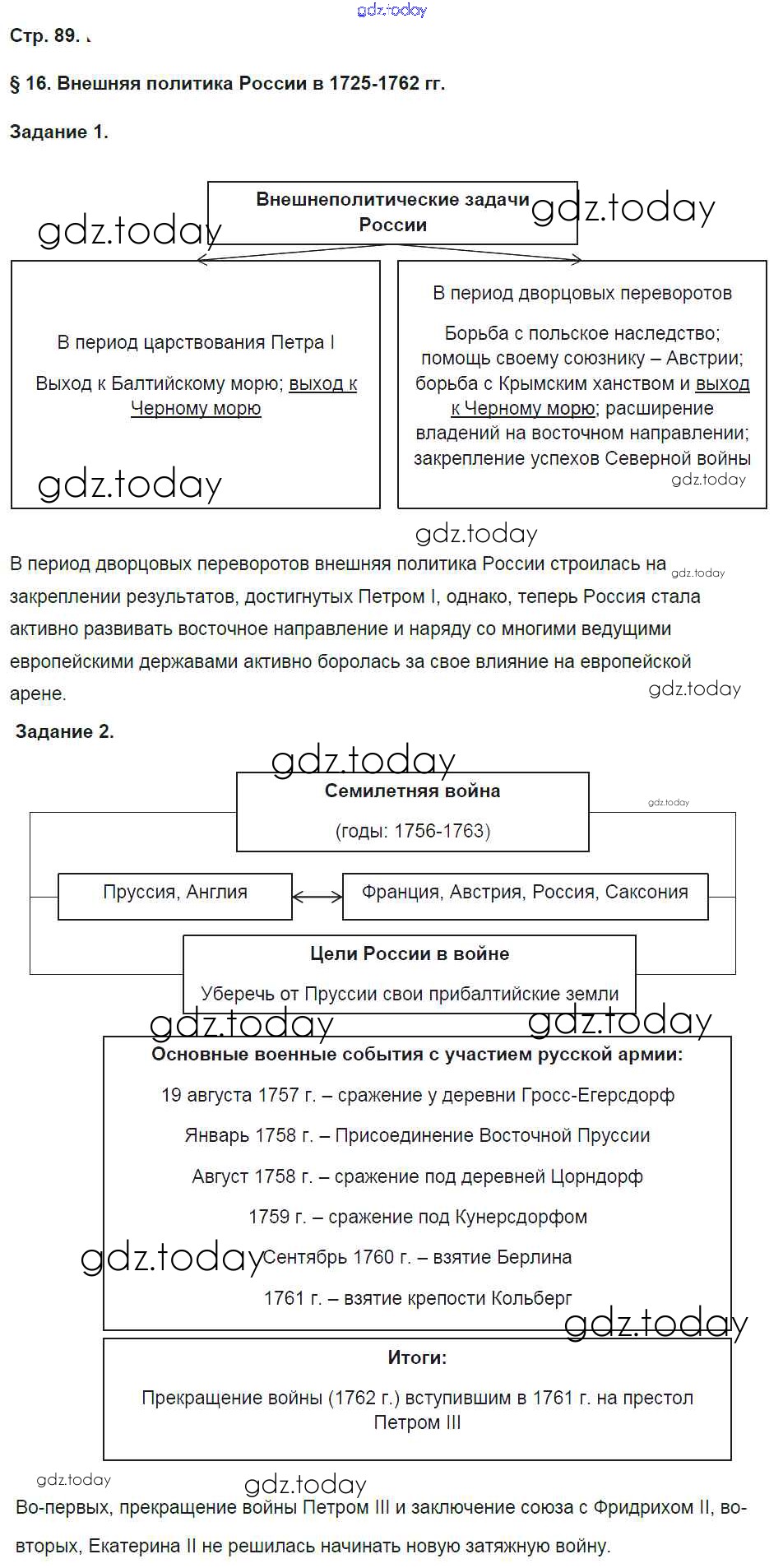 На страницах сайта gdz.today вы найдете учебный и вспомогательный материал, направленный на улучшения знаний школьной программы. ГДЗ - онлайн мир знаний Решение к части 1. Страницы 89 Рабочей тетради по Истории России для 8 класса Чернова Экзамен УМК 2017