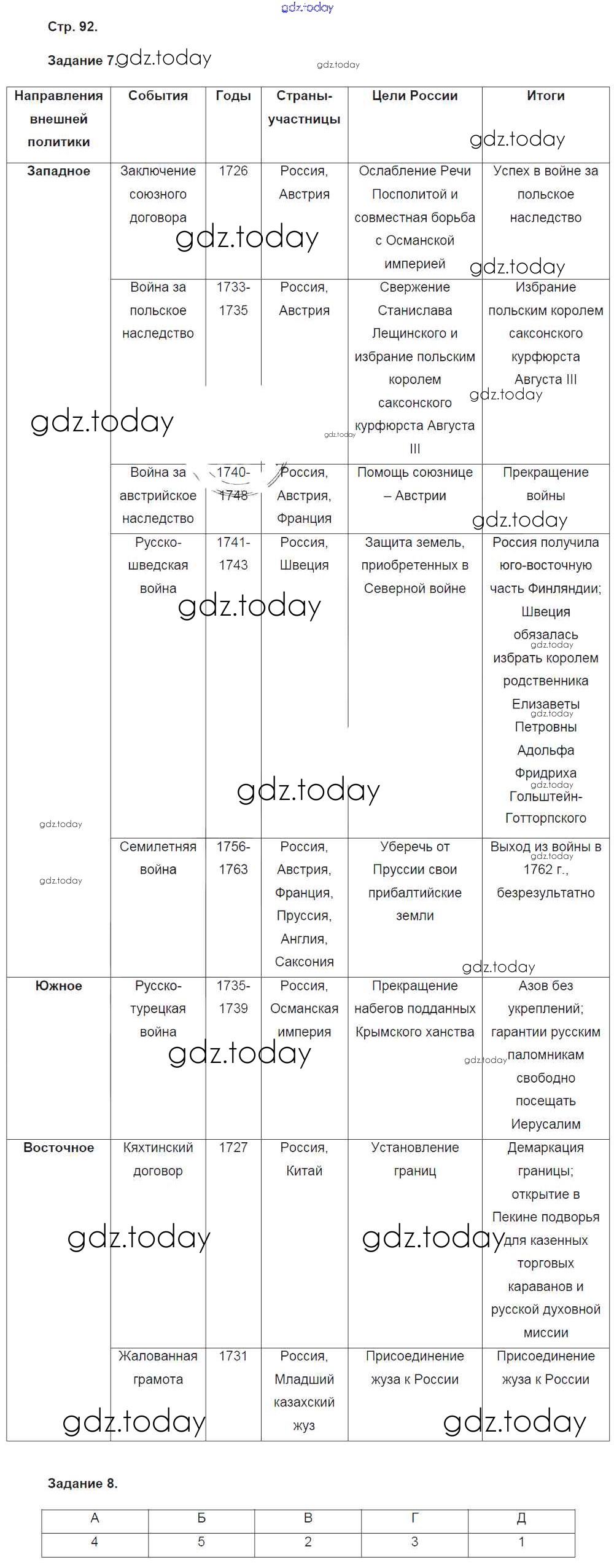 На страницах сайта gdz.today вы найдете учебный и вспомогательный материал, направленный на улучшения знаний школьной программы. ГДЗ - онлайн мир знаний Решение к части 1. Страницы 92 Рабочей тетради по Истории России для 8 класса Чернова Экзамен УМК 2017