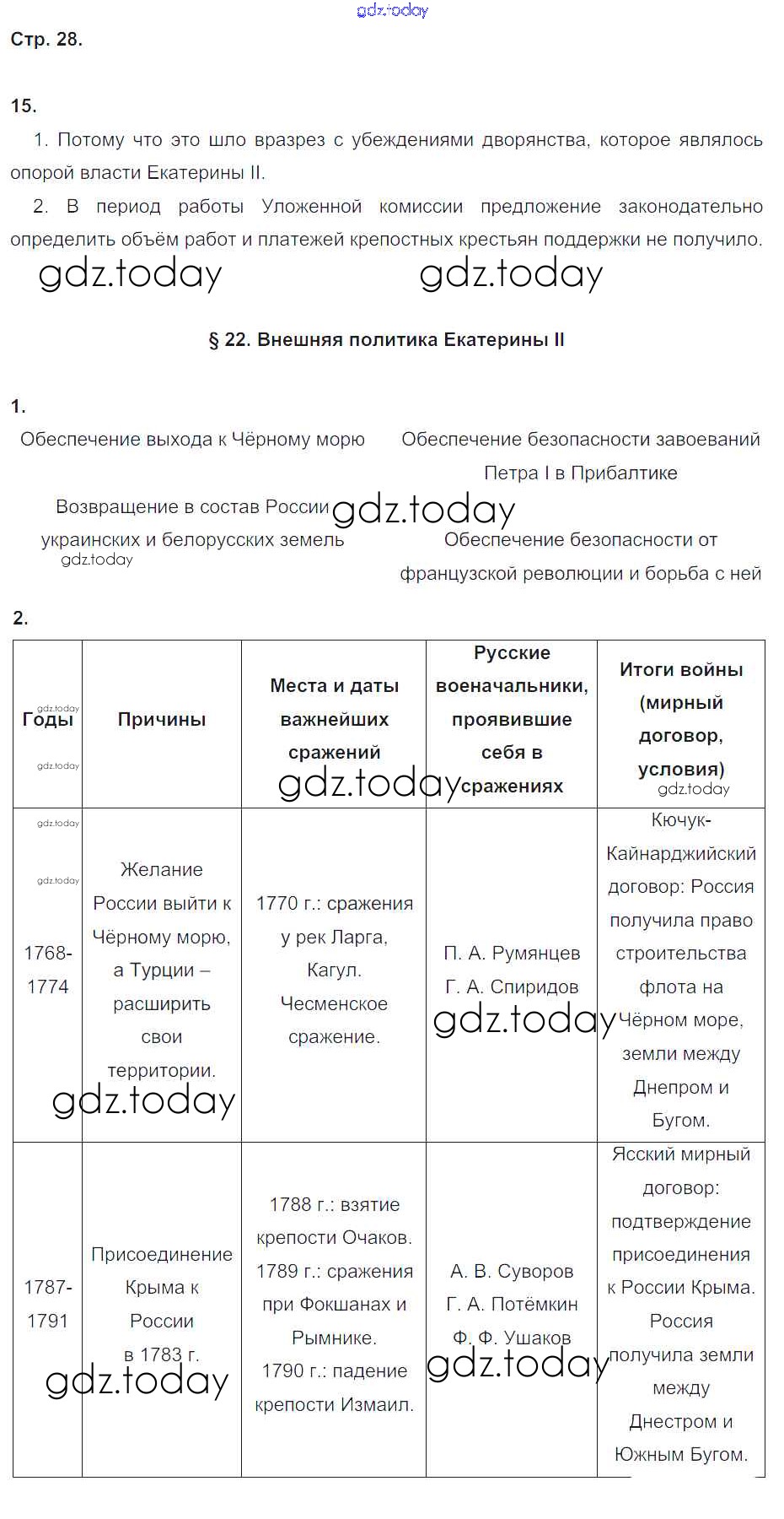На страницах сайта gdz.today вы найдете учебный и вспомогательный материал, направленный на улучшения знаний школьной программы. ГДЗ - онлайн мир знаний Решение к части 2. Страницы 28 Рабочей тетради по Истории России для 8 класса Чернова Экзамен УМК 2017