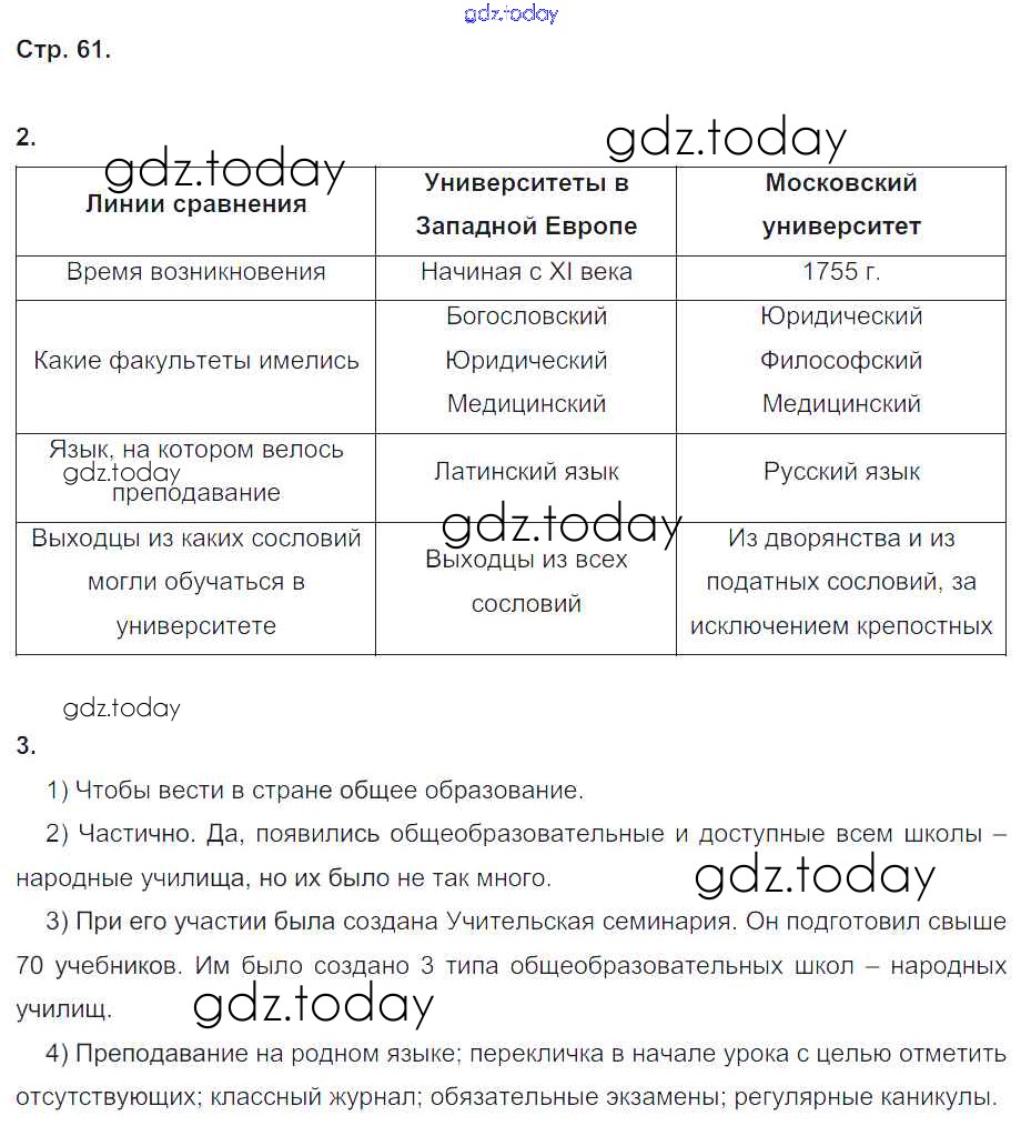 На страницах сайта gdz.today вы найдете учебный и вспомогательный материал, направленный на улучшения знаний школьной программы. ГДЗ - онлайн мир знаний Решение к части 2. Страницы 61 Рабочей тетради по Истории России для 8 класса Чернова Экзамен УМК 2017