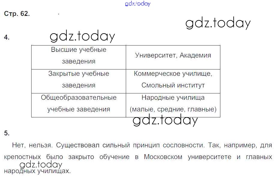 На страницах сайта gdz.today вы найдете учебный и вспомогательный материал, направленный на улучшения знаний школьной программы. ГДЗ - онлайн мир знаний Решение к части 2. Страницы 62 Рабочей тетради по Истории России для 8 класса Чернова Экзамен УМК 2017