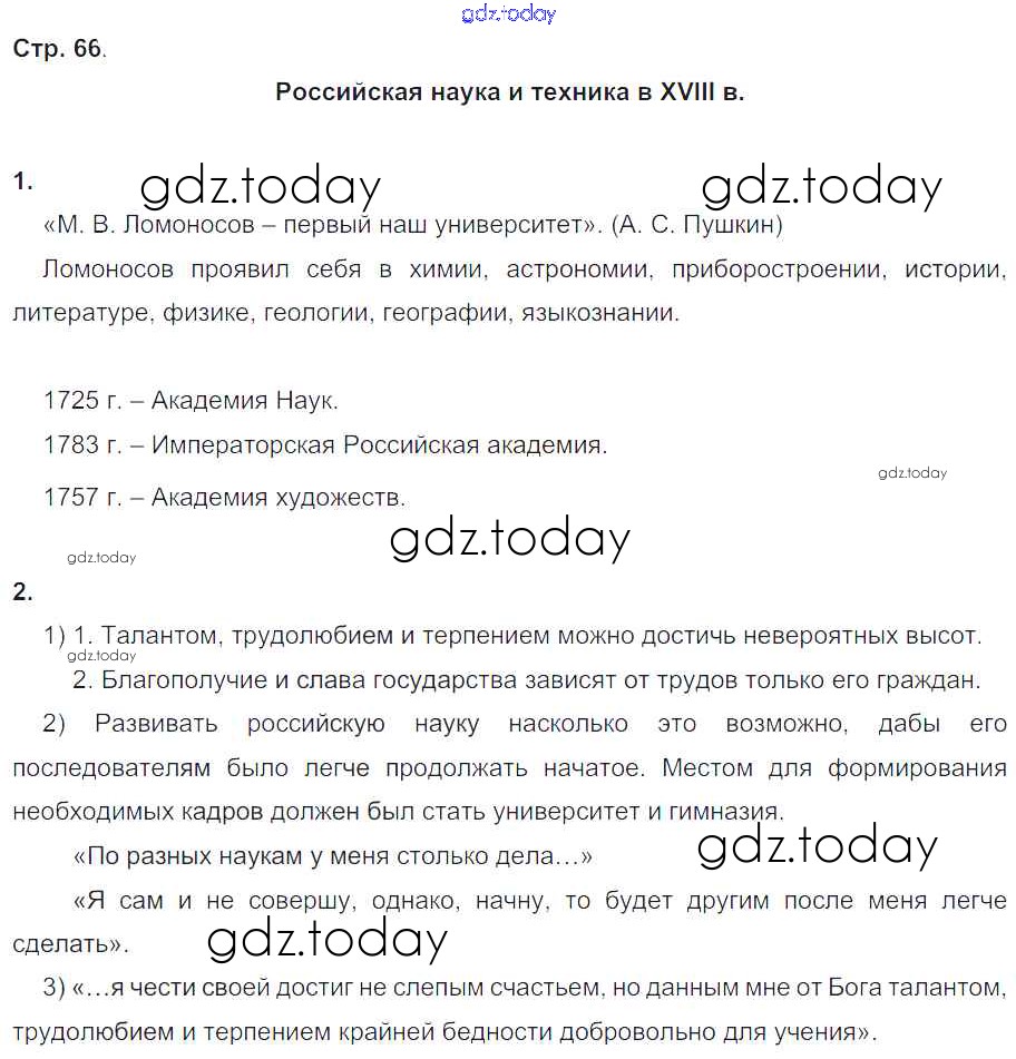 На страницах сайта gdz.today вы найдете учебный и вспомогательный материал, направленный на улучшения знаний школьной программы. ГДЗ - онлайн мир знаний Решение к части 2. Страницы 66 Рабочей тетради по Истории России для 8 класса Чернова Экзамен УМК 2017