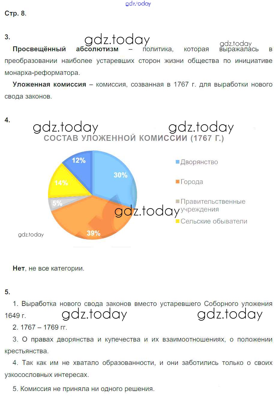 На страницах сайта gdz.today вы найдете учебный и вспомогательный материал, направленный на улучшения знаний школьной программы. ГДЗ - онлайн мир знаний Решение к части 2. Страницы 8 Рабочей тетради по Истории России для 8 класса Чернова Экзамен УМК 2017