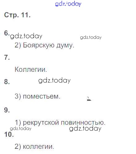 На страницах сайта gdz.today вы найдете учебный и вспомогательный материал, направленный на улучшения знаний школьной программы. ГДЗ - онлайн мир знаний Страницы (решение) 11 Рабочей тетради по Истории России для 8 класса Гевуркова Экзамен УМК 2018