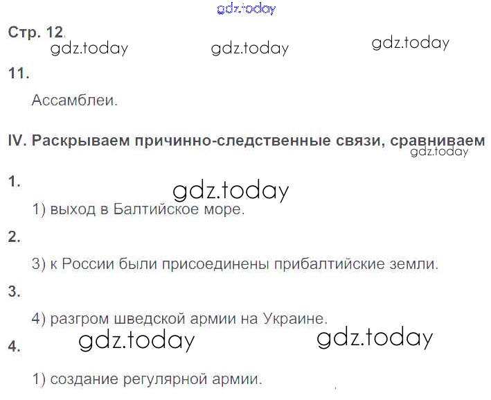 На страницах сайта gdz.today вы найдете учебный и вспомогательный материал, направленный на улучшения знаний школьной программы. ГДЗ - онлайн мир знаний Страницы (решение) 12 Рабочей тетради по Истории России для 8 класса Гевуркова Экзамен УМК 2018