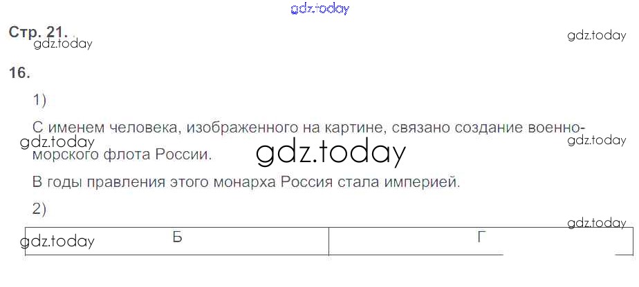 На страницах сайта gdz.today вы найдете учебный и вспомогательный материал, направленный на улучшения знаний школьной программы. ГДЗ - онлайн мир знаний Страницы (решение) 21 Рабочей тетради по Истории России для 8 класса Гевуркова Экзамен УМК 2018