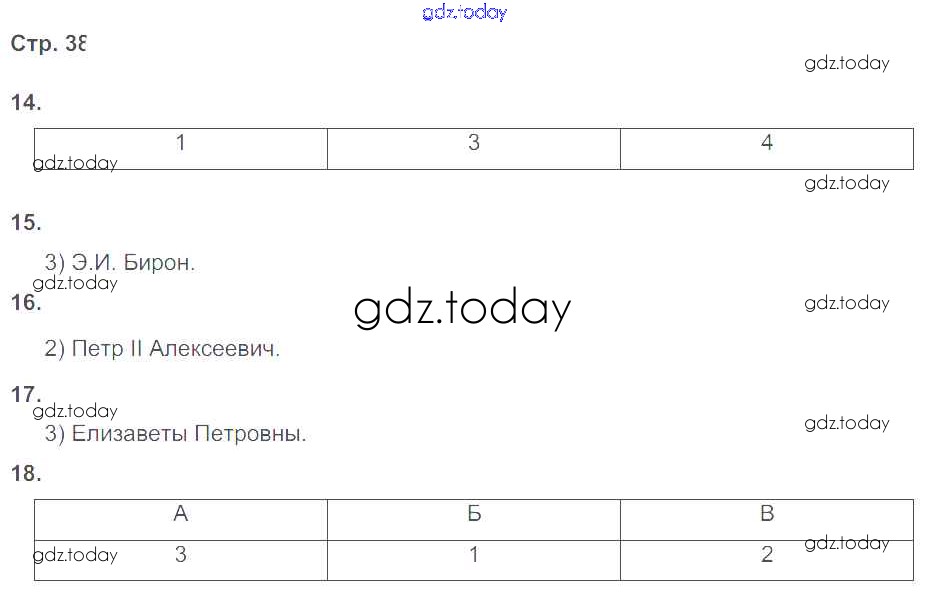 На страницах сайта gdz.today вы найдете учебный и вспомогательный материал, направленный на улучшения знаний школьной программы. ГДЗ - онлайн мир знаний Страницы (решение) 38 Рабочей тетради по Истории России для 8 класса Гевуркова Экзамен УМК 2018