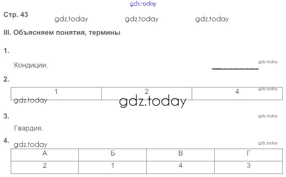 На страницах сайта gdz.today вы найдете учебный и вспомогательный материал, направленный на улучшения знаний школьной программы. ГДЗ - онлайн мир знаний Страницы (решение) 43 Рабочей тетради по Истории России для 8 класса Гевуркова Экзамен УМК 2018