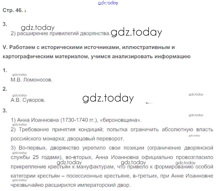 На страницах сайта gdz.today вы найдете учебный и вспомогательный материал, направленный на улучшения знаний школьной программы. ГДЗ - онлайн мир знаний Страницы (решение) 46 Рабочей тетради по Истории России для 8 класса Гевуркова Экзамен УМК 2018