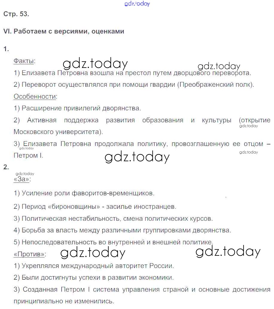 На страницах сайта gdz.today вы найдете учебный и вспомогательный материал, направленный на улучшения знаний школьной программы. ГДЗ - онлайн мир знаний Страницы (решение) 53 Рабочей тетради по Истории России для 8 класса Гевуркова Экзамен УМК 2018