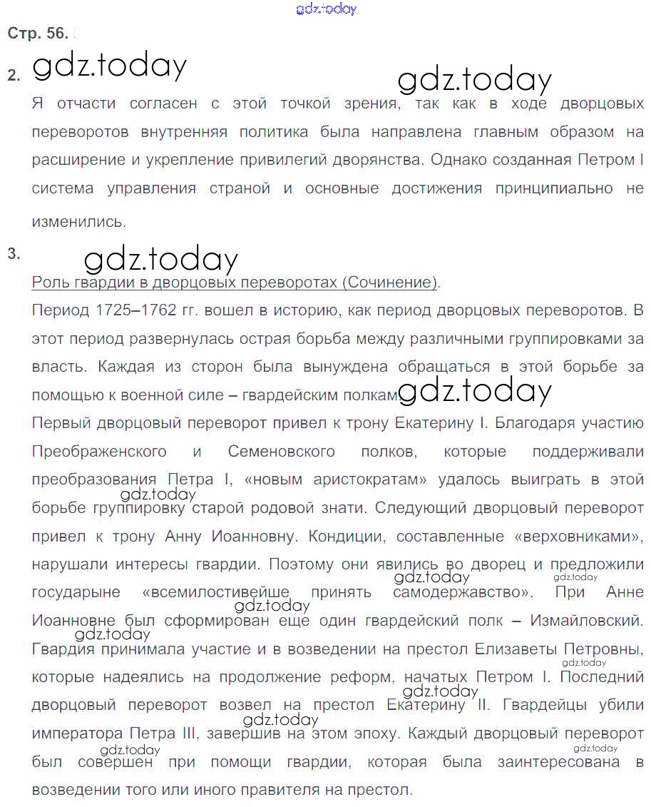 На страницах сайта gdz.today вы найдете учебный и вспомогательный материал, направленный на улучшения знаний школьной программы. ГДЗ - онлайн мир знаний Страницы (решение) 56 Рабочей тетради по Истории России для 8 класса Гевуркова Экзамен УМК 2018