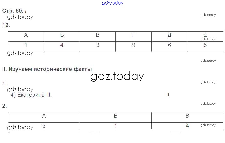 На страницах сайта gdz.today вы найдете учебный и вспомогательный материал, направленный на улучшения знаний школьной программы. ГДЗ - онлайн мир знаний Страницы (решение) 60 Рабочей тетради по Истории России для 8 класса Гевуркова Экзамен УМК 2018