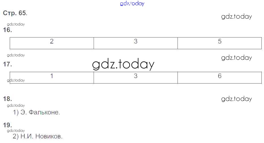 На страницах сайта gdz.today вы найдете учебный и вспомогательный материал, направленный на улучшения знаний школьной программы. ГДЗ - онлайн мир знаний Страницы (решение) 65 Рабочей тетради по Истории России для 8 класса Гевуркова Экзамен УМК 2018