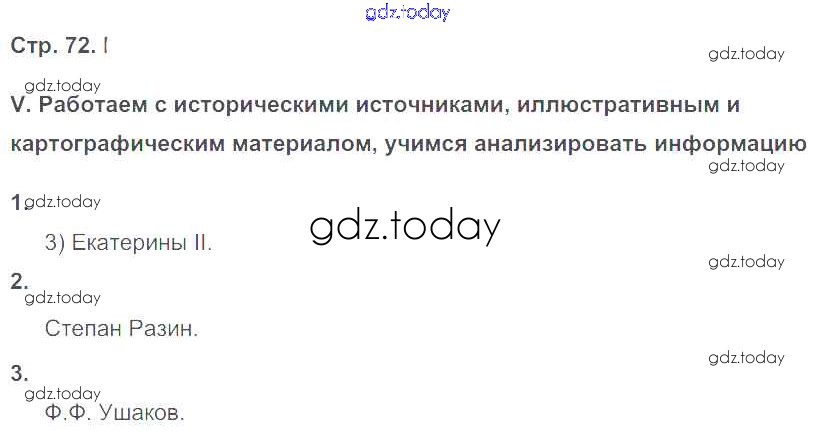 На страницах сайта gdz.today вы найдете учебный и вспомогательный материал, направленный на улучшения знаний школьной программы. ГДЗ - онлайн мир знаний Страницы (решение) 72 Рабочей тетради по Истории России для 8 класса Гевуркова Экзамен УМК 2018
